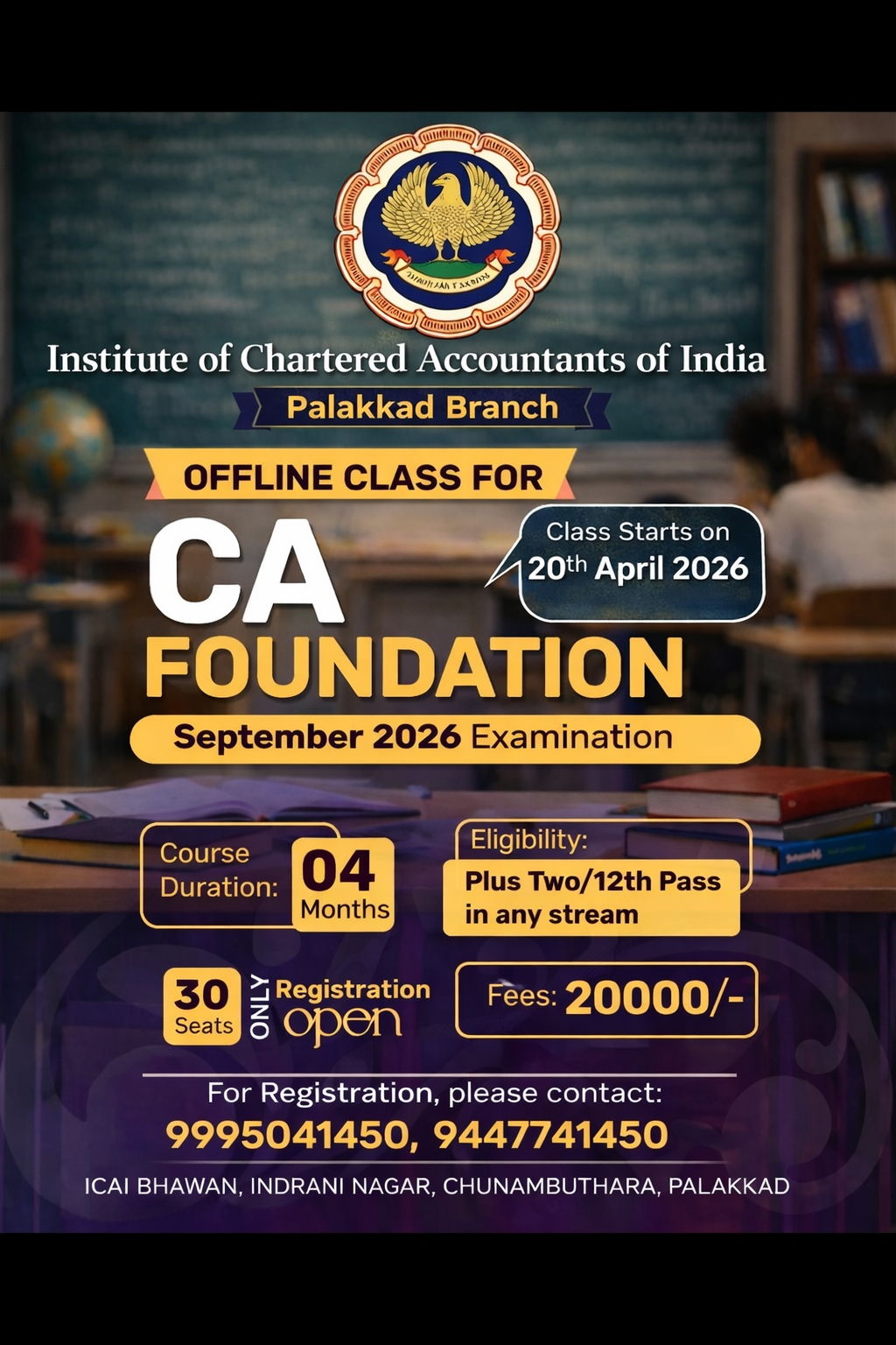 'PALAKKAD BRANCH OF SIRC OF ICAI' , the name of which was Palghat Branch was constituted with effect from 31st December 1987 vide Notification 28-RC(2)/26/88 dated 13th January 1988